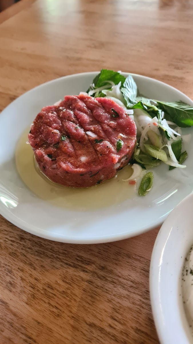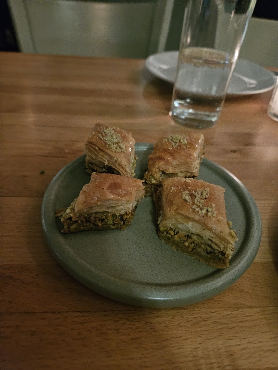 Beautiful location with a patio next to nice tree lined streets. Nice decor and atmosphere but the food is really the best part. Super fresh Lebanese favorites prepared and presented with care. The flavors and presentation were terrific. The salads fresh and zesty. Fatousch was amazing. Tabouleh awesome. The grilled meats still juicy and not over done. The piping hot bread was a terrific accompaniment to the flavorful dishes. Finish it off with a not too sweet but delicious baklava and a mint tea. Yum. What a nice meal. And the service wonderful and friendly. Highly reccomend.